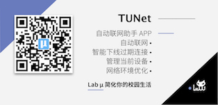 下面会介绍团队目前主打的三个产品:TUNet自动连网助手、Tsinghua Now即刻清华、CaμsKit大型活动服务。请允许我特别感谢对Lab μ团队发展做出难以磨灭贡献的几百近千位小伙伴们,由于篇幅限制,此序章只列出3个产品各自最突出的6位同学,并写明他们不分先后的贡献[4]。期待未来这三个产品的贡献列表上的名单能不断翻新。