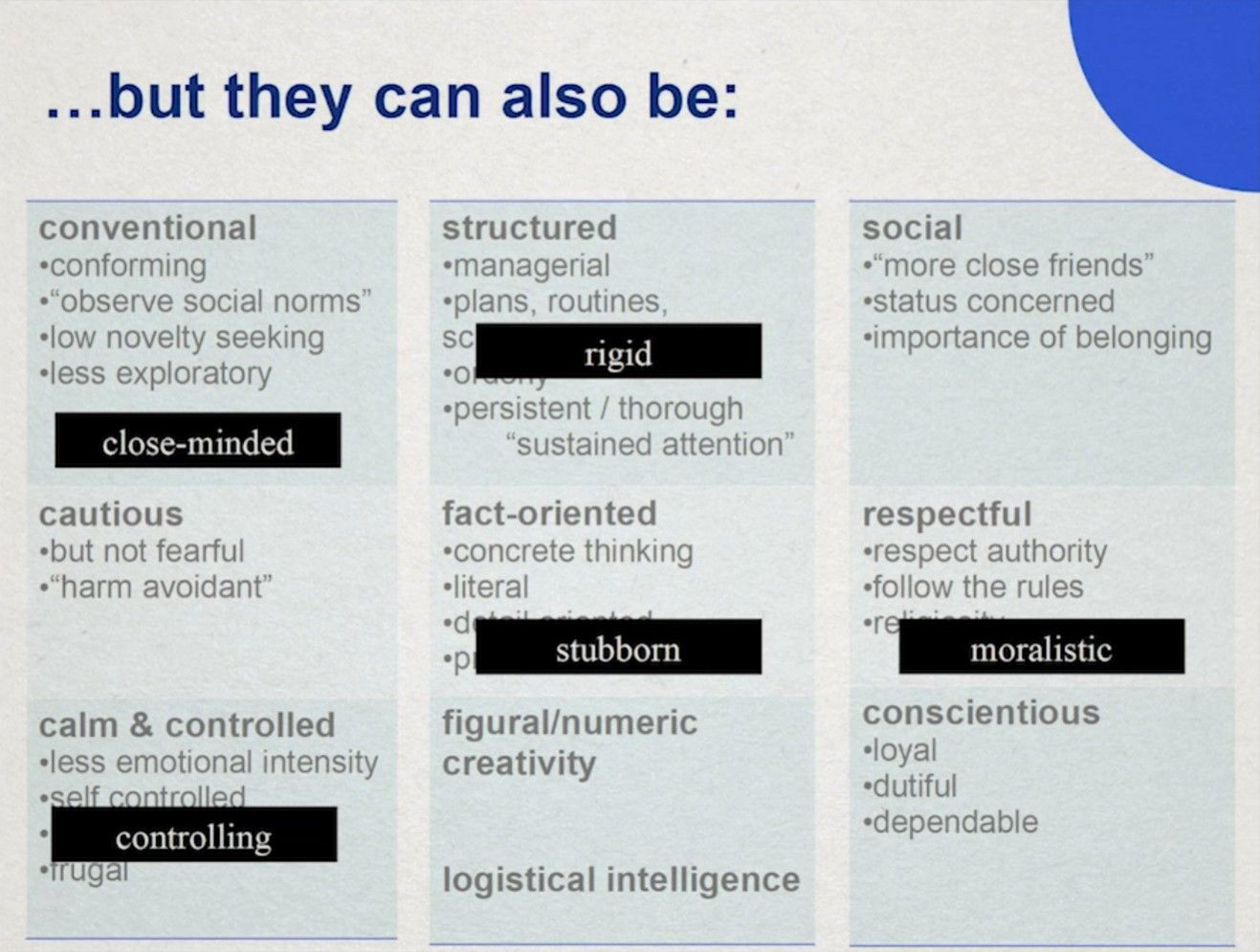 - 建造者(Builder):和血清素关联,可概括为“谨慎和遵守社会规范”